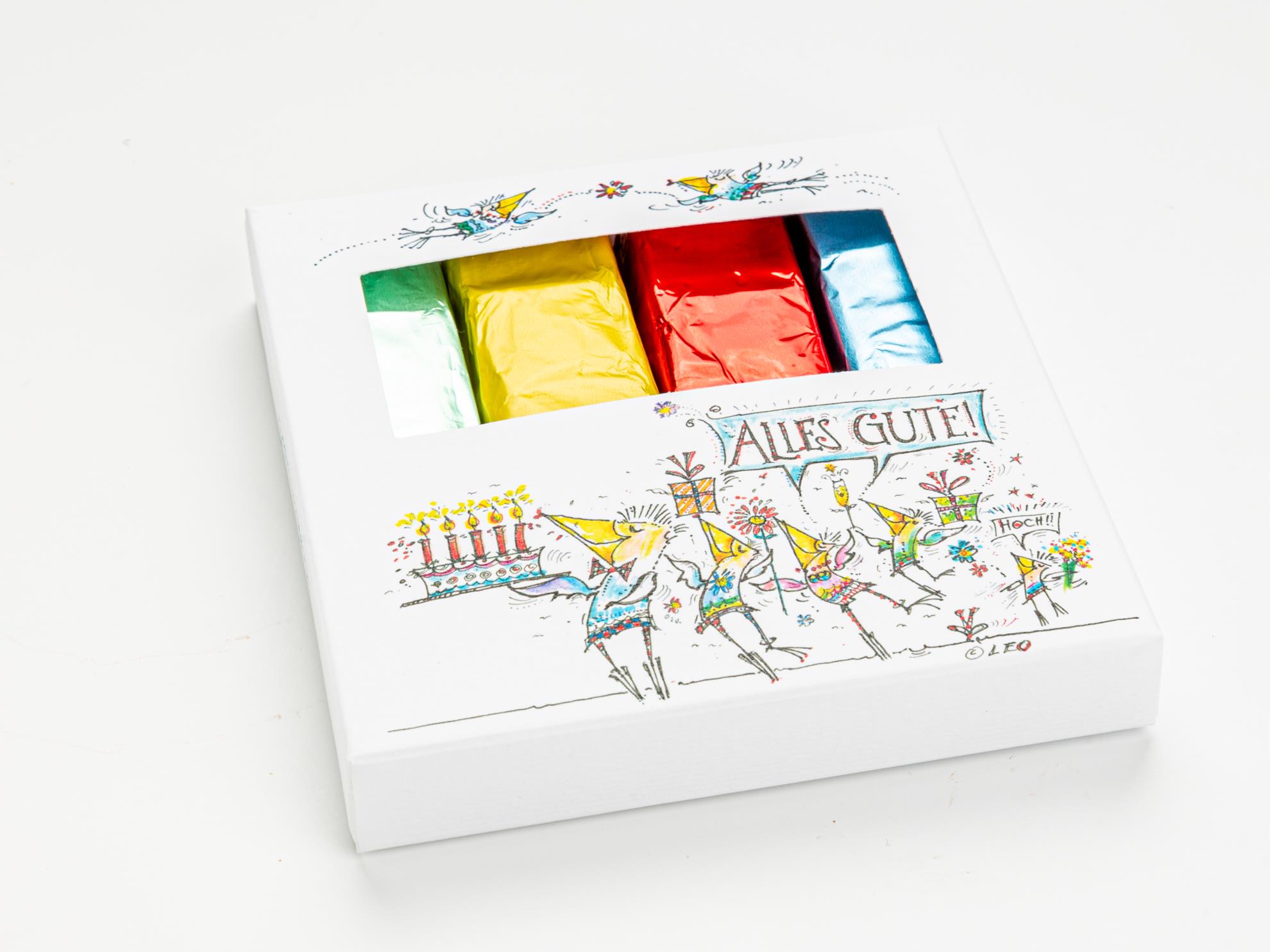 Branchli-Kollektion mit unseren beliebtesten Sorten: Hell, Cappuccino, Erdnuss und Pistazien-Marzipan