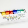 Gelb: Erdnuss-Gianduja ERDNÜSSE, Zucker , MANDELN, Couverture (Kakaokerne, Zucker, Kakaobutter, Vanille) Fleur de Sel