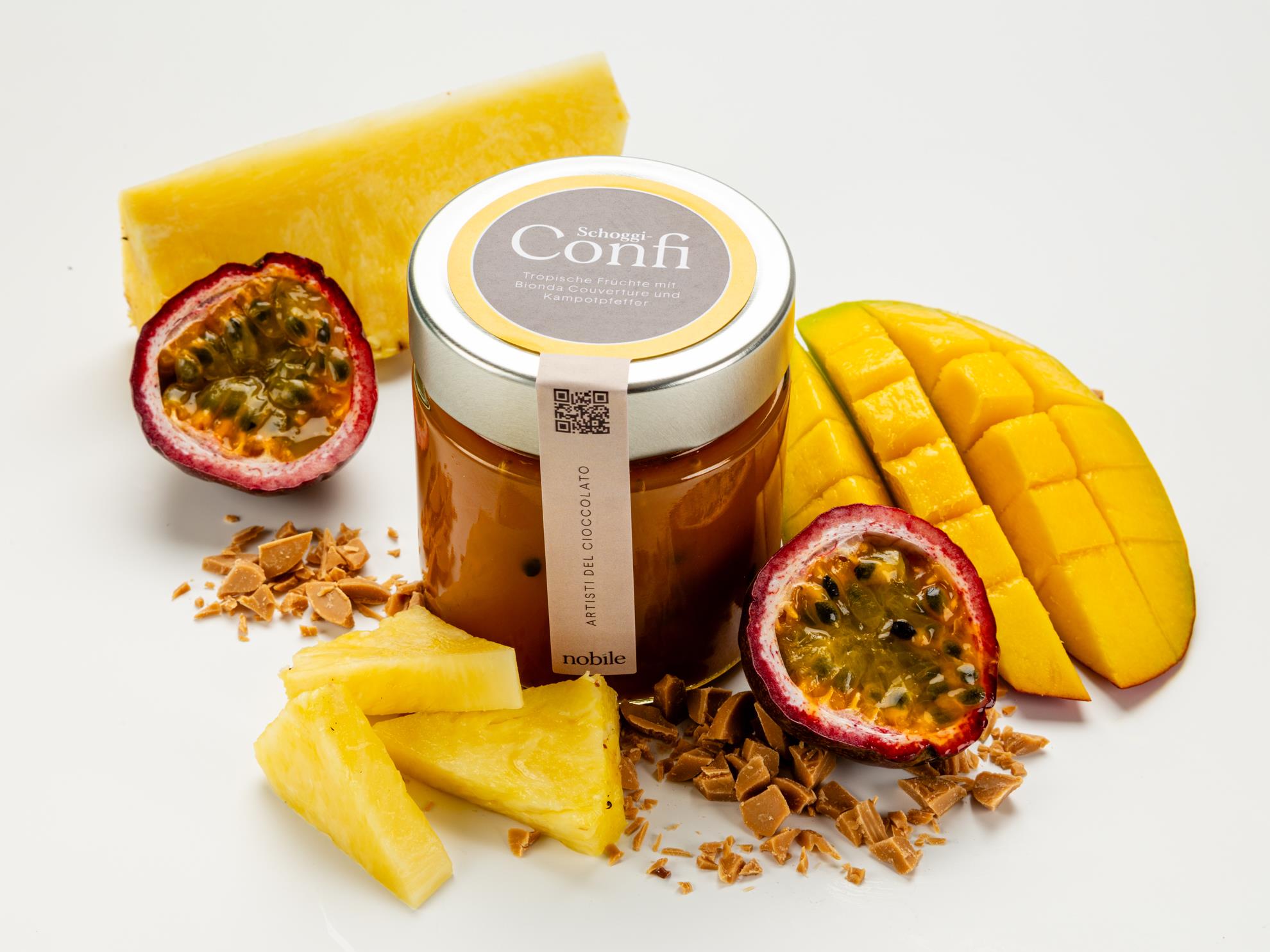Tropische Früchte-Konfiture mit Caramel Schokolade