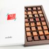 Couverturen (Zucker, Kakaobutter, Kakaokerne, VMILCHPULVER), RAHM, MANDELN, Zucker, Birnenmark, BAUMNÜSSE, Zucker, Honig, BUTTER, Glucosesirup, Qittenmark, Orangenkonzentrat, Fleur de sel, Safran